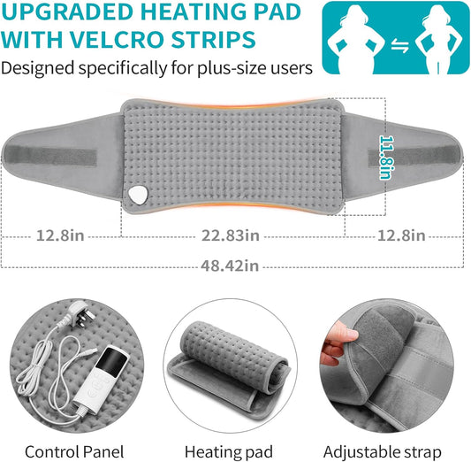 SKY-TOUCH Electric Heating Pad Wrap for Waist & Body, LCD Controller, 9 Heat Levels, 4 Timer Settings, Soft Touch, Fast Heating, Machine Washable - 60x31cm, Ideal for Back, Belly, Legs, & More