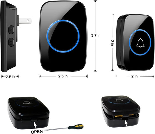 SKY-TOUCH Wireless Doorbell, Waterproof Door Bell Kit With 60 Chimes and LED, Adjustable Volume, Easy installation, Doorbell for Home Office Classroom,Black (1 Receiver And 1 Button)