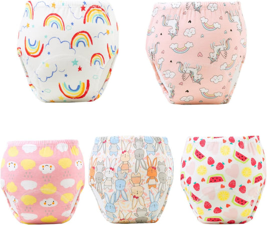 SKY-TOUCH 5PCS Baby Potty Training Pants Cotton, Soft Breathable Potty Training Underwear for 1-3 Years, Highly Absorbent Reusable Diapers for Baby Boys & Girls (M, Boy 8-13kg)