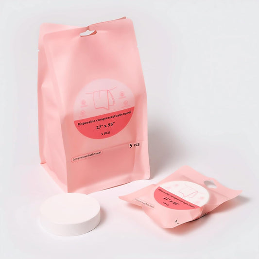 SKY-TOUCH 5Pcs Large Compressed Disposable Bath Towels, 70x140cm Portable Single-Use Towels, Soft and Absorbent Travel Towels for Camping, Hotel, Beach, Gym, and Outdoor Use(Pink)
