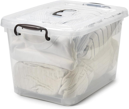 SKY-TOUCH 47L Clear Plastic Storage Box with Lid and Wheels,Stackable Organizer Bin with Handles,Design for Easy Mobility,Ideal for Clothes,Closet Storage,Home Storage Organization,48x28x35cm,1 pack