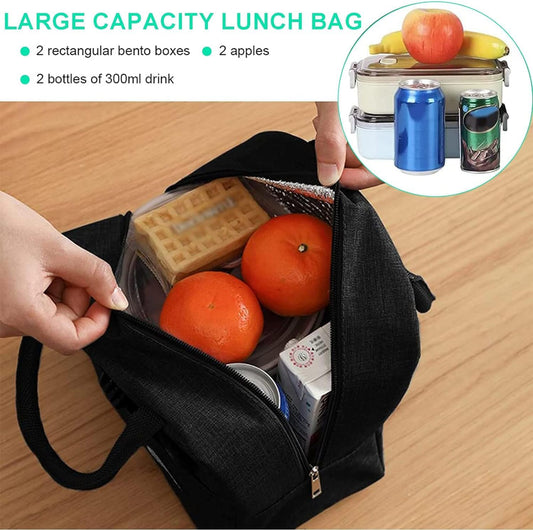 حقيبة صندوق الغداء SKY-TOUCH: حقيبة غداء معزولة قابلة لإعادة الاستخدام ومضادة للتسرب ومبرد حراري وحقائب يد للطعام للعمل والمكتب والمدرسة والسفر باللون الأسود