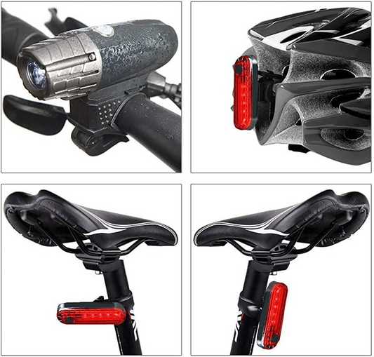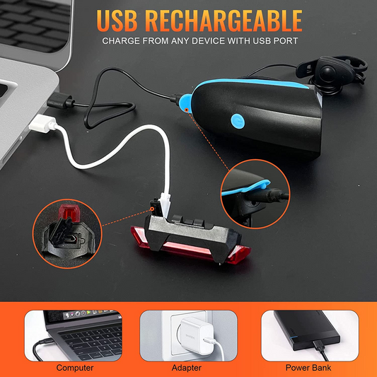 مجموعة مصابيح الدراجة SKY-TOUCH قابلة لإعادة الشحن عبر USB وإكسسوارات LED ليلية لركوب الدراجات ومصابيح أمامية خلفية للدراجة الجبلية 4 أوضاع إضاءة، سهلة التركيب (أزرق)