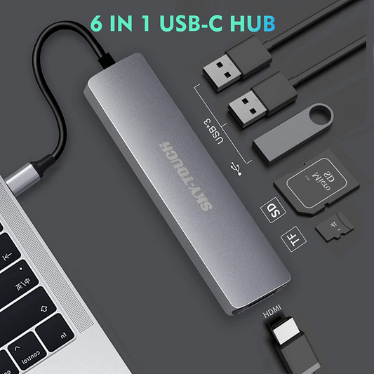 محول USB C Hub متعدد المنافذ - دونجل ألومنيوم محمول 6 في 1 مع مخرج HDMI 4K، 3 منافذ USB 3.0، قارئ بطاقة SD/Micro SD متوافق مع MacBook Pro، XPS المزيد من النوع C