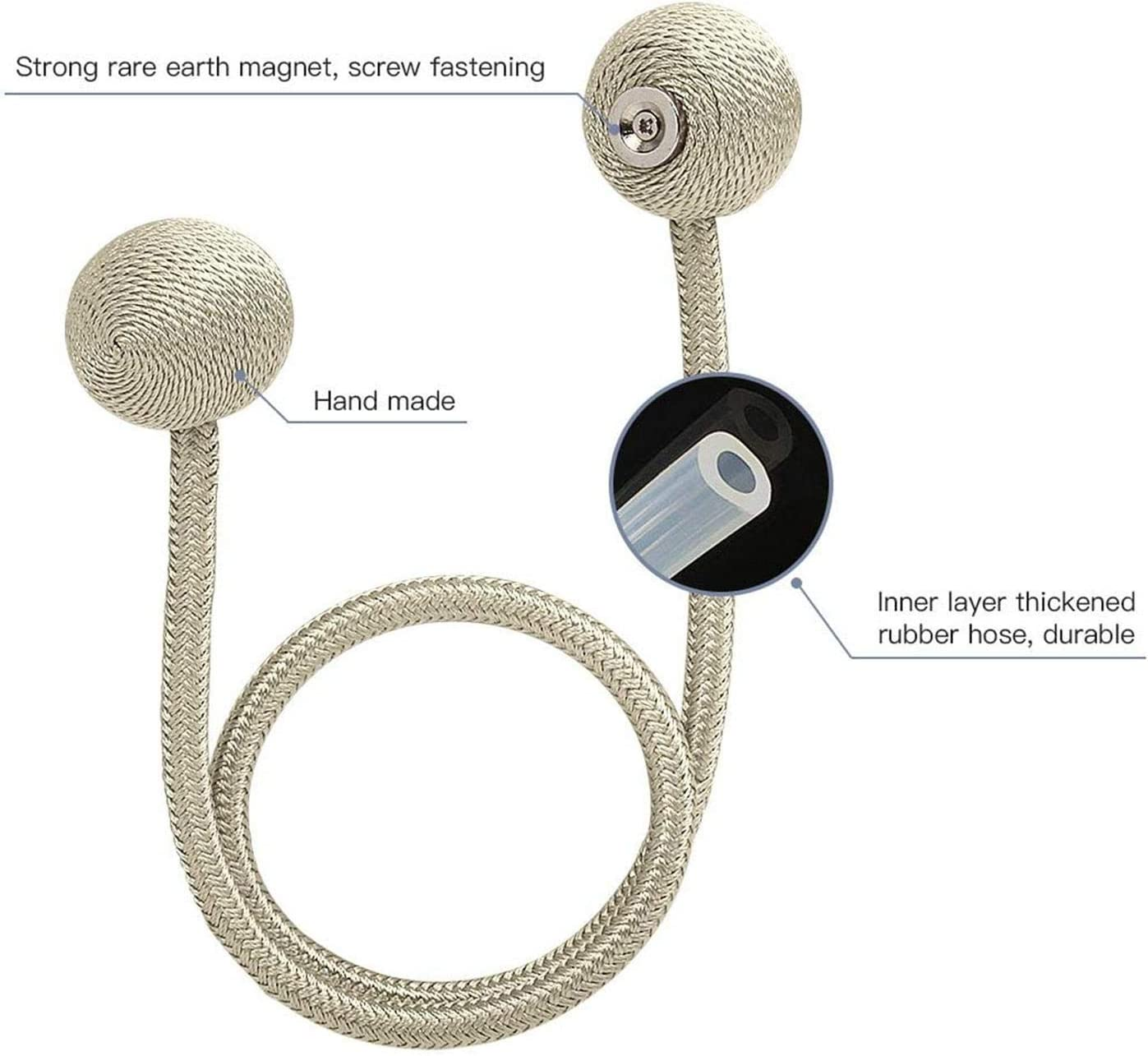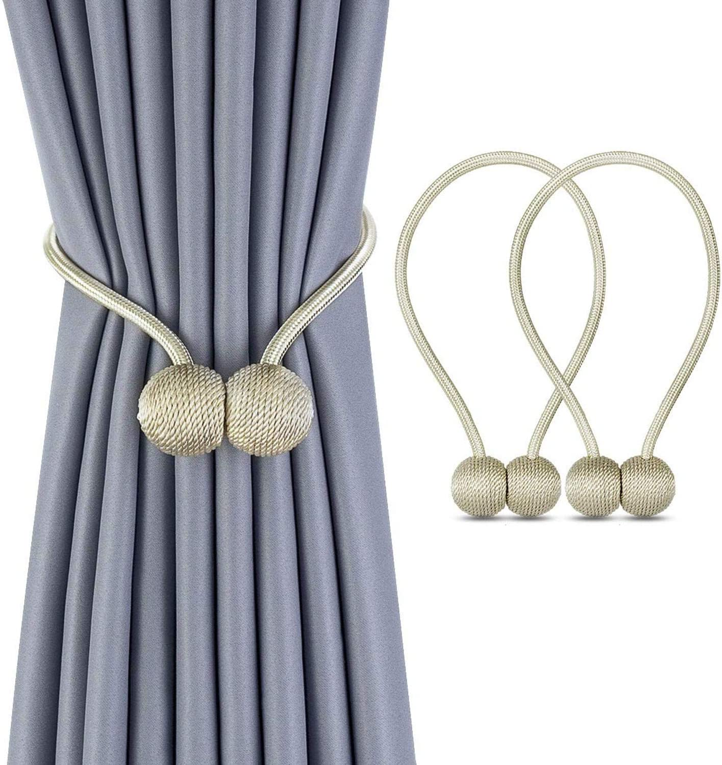 SKY-TOUCH زوج واحد من أربطة الستائر المغناطيسية وأشرطة الستارة المغناطيسية وإبزيم ستارة مغناطيسي قوي للمنزل والمكتب، بيج