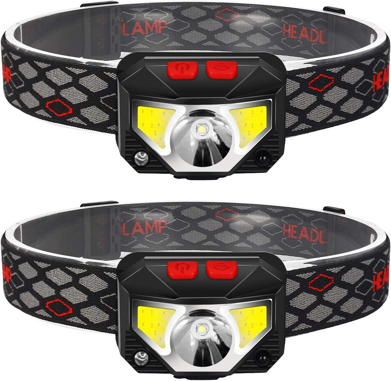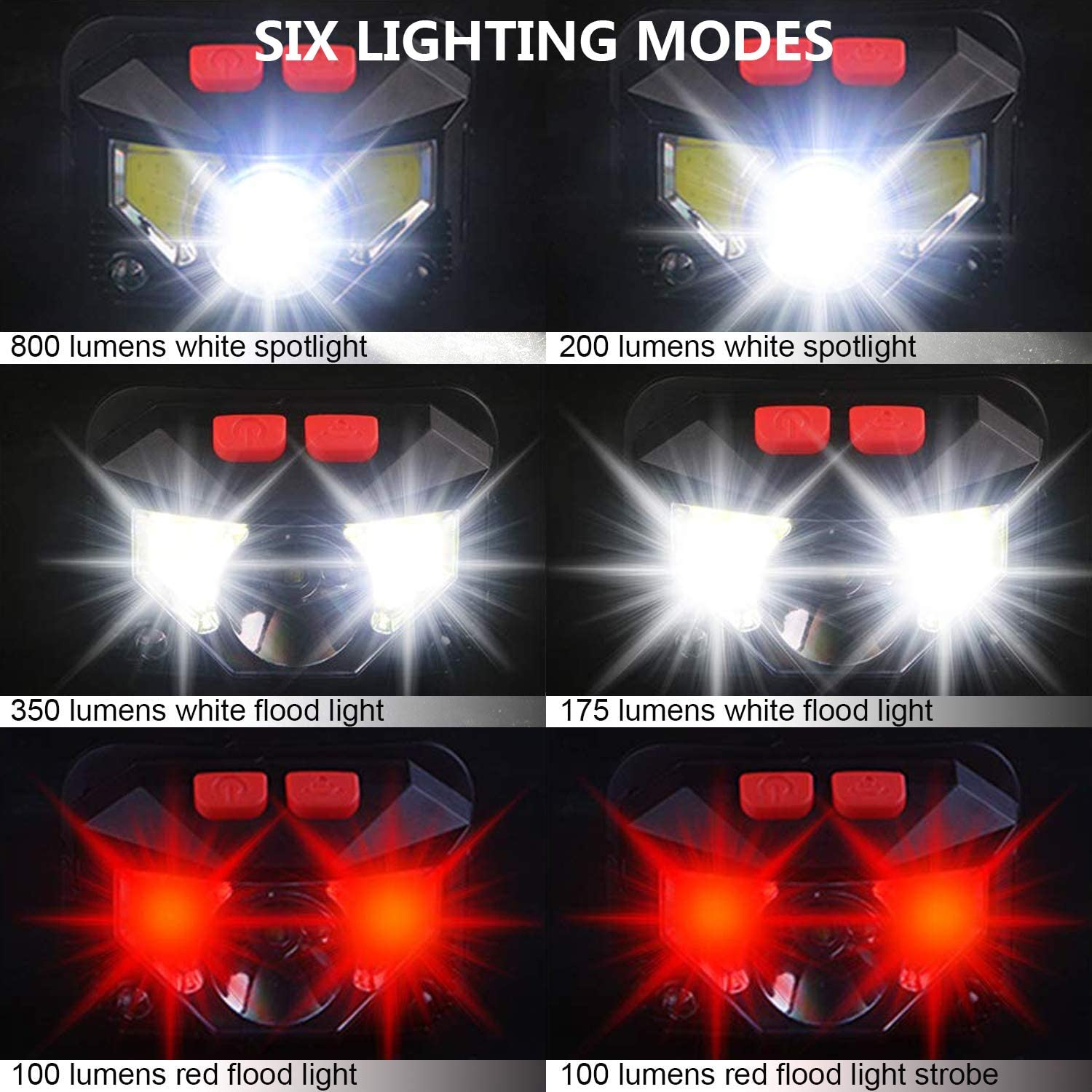 SKY-TOUCH 2-Pack مصباح أمامي قابل لإعادة الشحن، 800 لومن مصباح رأس مستشعر الحركة، Ipx4 مقاوم للماء، مصباح كري أبيض ساطع وضوء أحمر، مثالي للجري والتخييم والمشي لمسافات طويلة والمزيد