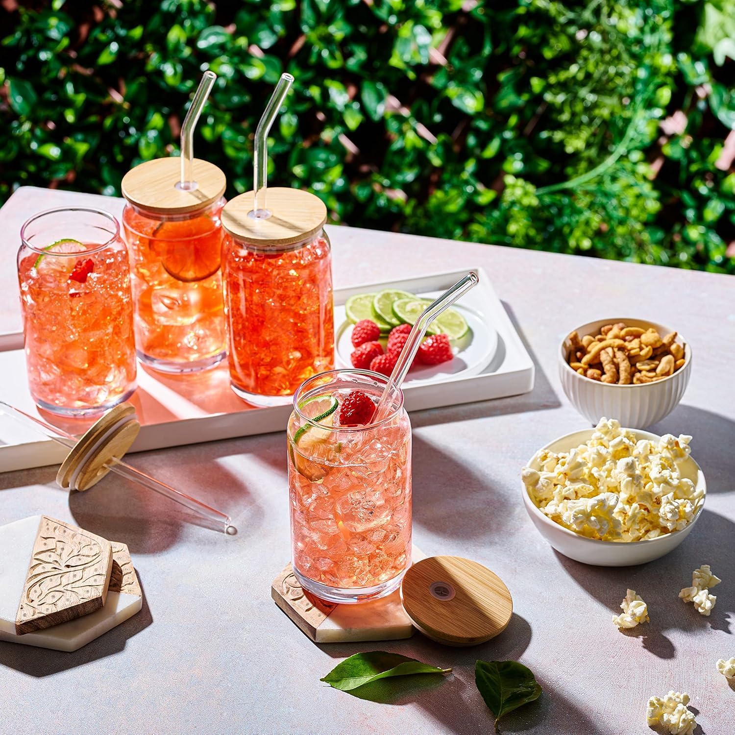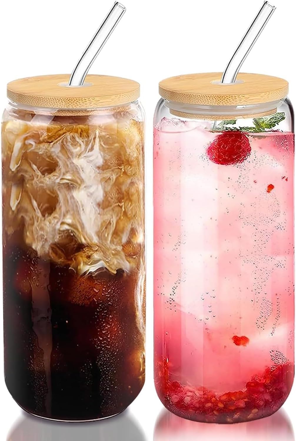 - Must-Have for Drinks: Includes 2 clear 550ml glass cups, 2 reusable glass straws, and 2 natural bamboo lids for stylish and functional everyday use