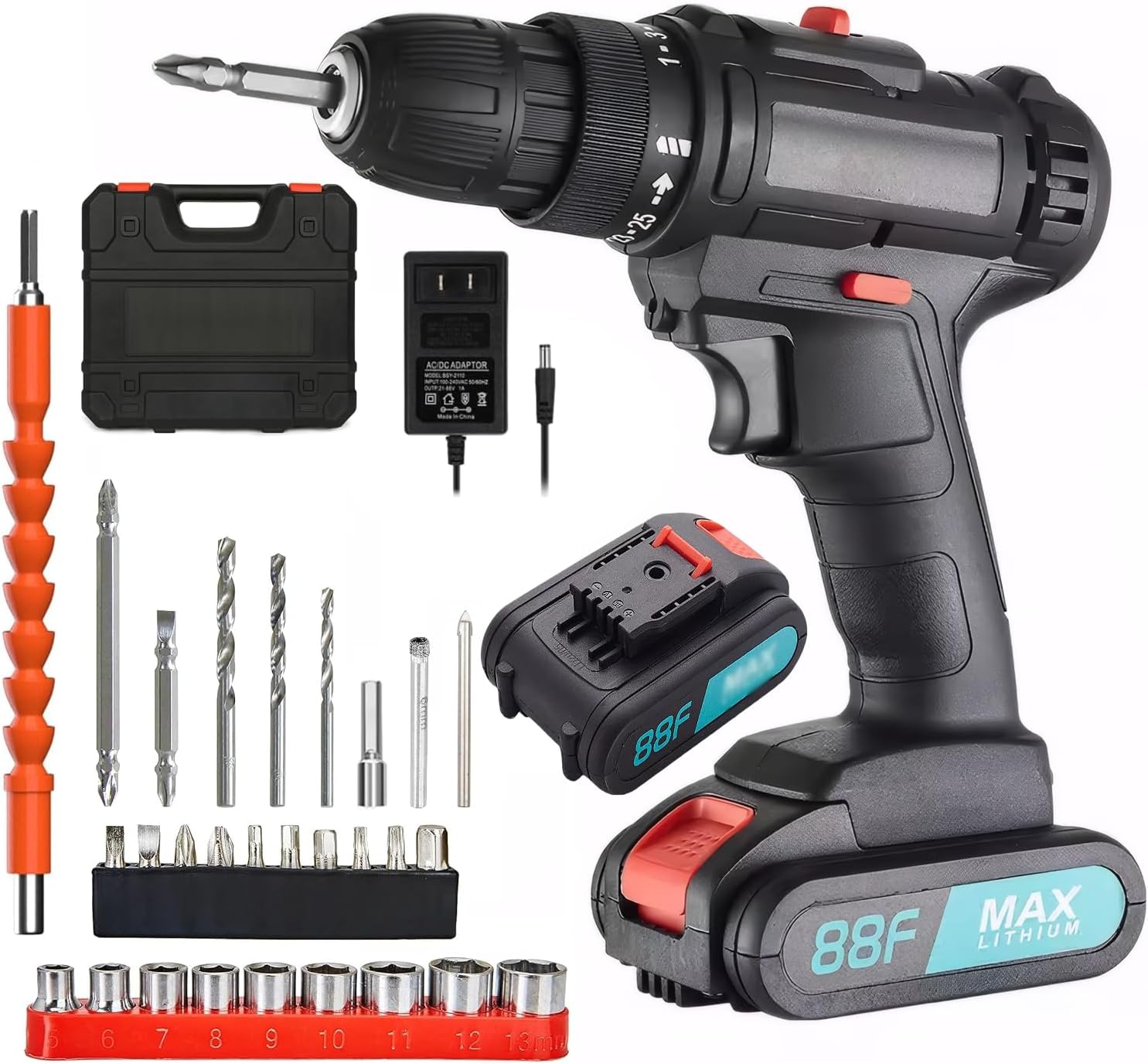 - 21V Cordless Power Drill with 2 Batteries: This electric drill kit includes two 21V lithium-ion batteries and a fast charger, ensuring extended runtime and reducing downtime. Ideal for home renovations, furniture assembly, and DIY tasks that require sustained power