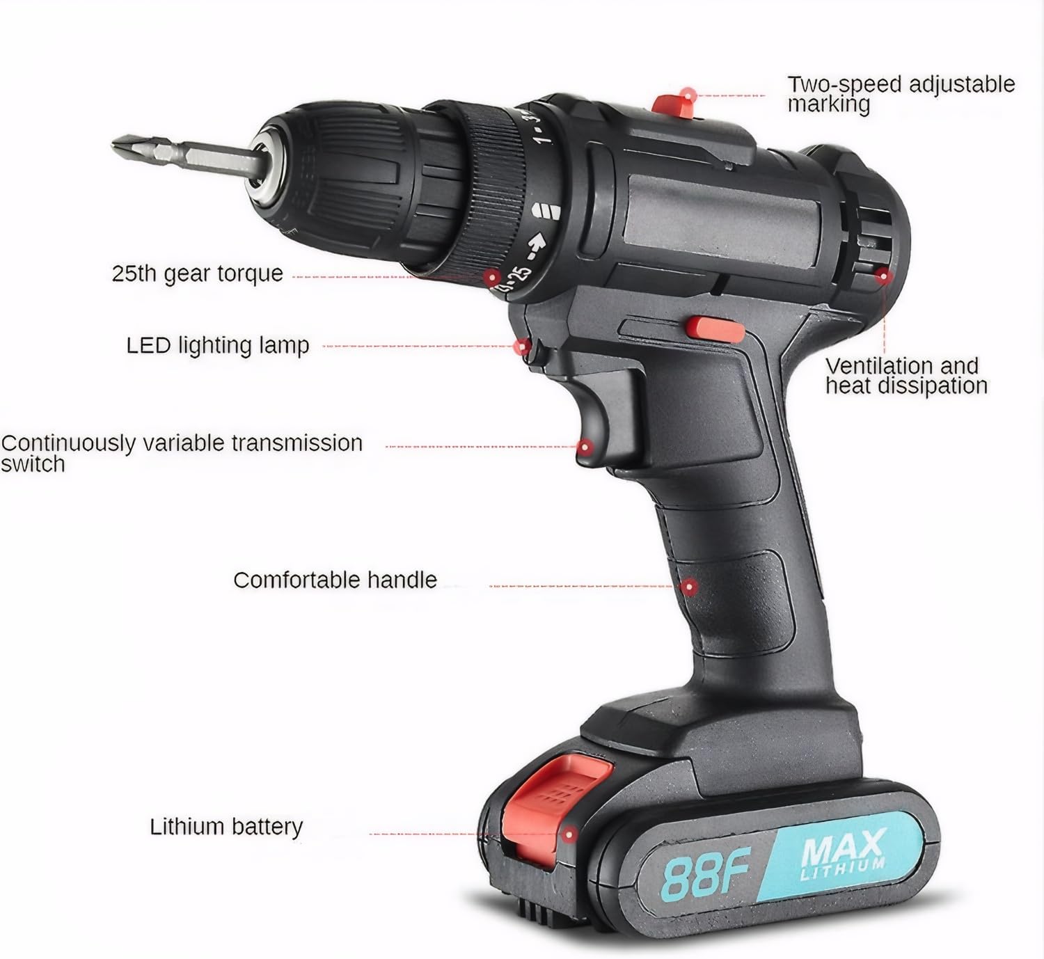 - 21V Cordless Power Drill with 2 Batteries: This electric drill kit includes two 21V lithium-ion batteries and a fast charger, ensuring extended runtime and reducing downtime. Ideal for home renovations, furniture assembly, and DIY tasks that require sustained power