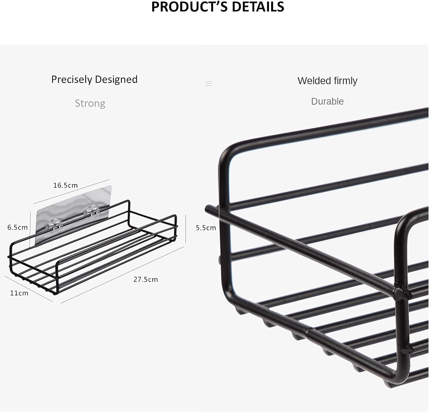 - أرفف الدش بدون حفر: علبة الدش اللاصقة هذه سهلة التركيب بدون حفر أو براغي، فقط ضع ملصق أرفف الدش اللاصق على الحائط ثم قم بإرفاق رف الدش! علبة الدش بدون مثقاب ستبقي حمامك مرتبًا وشامبو الدش والصابون والجل ومنظف الوجه واللوشن والفرش جميعها منظمة ويمكن الوصول إليها باليد.