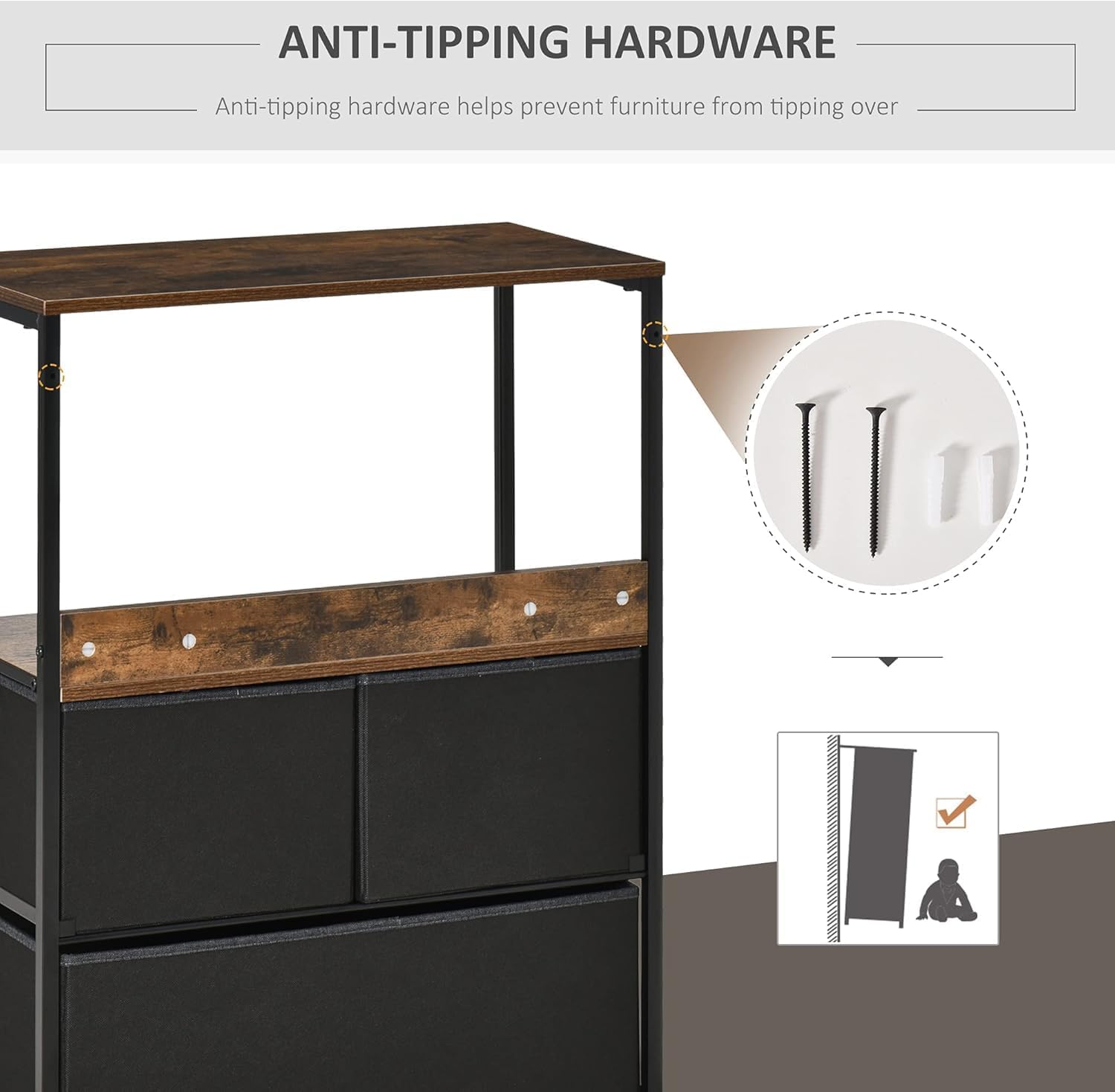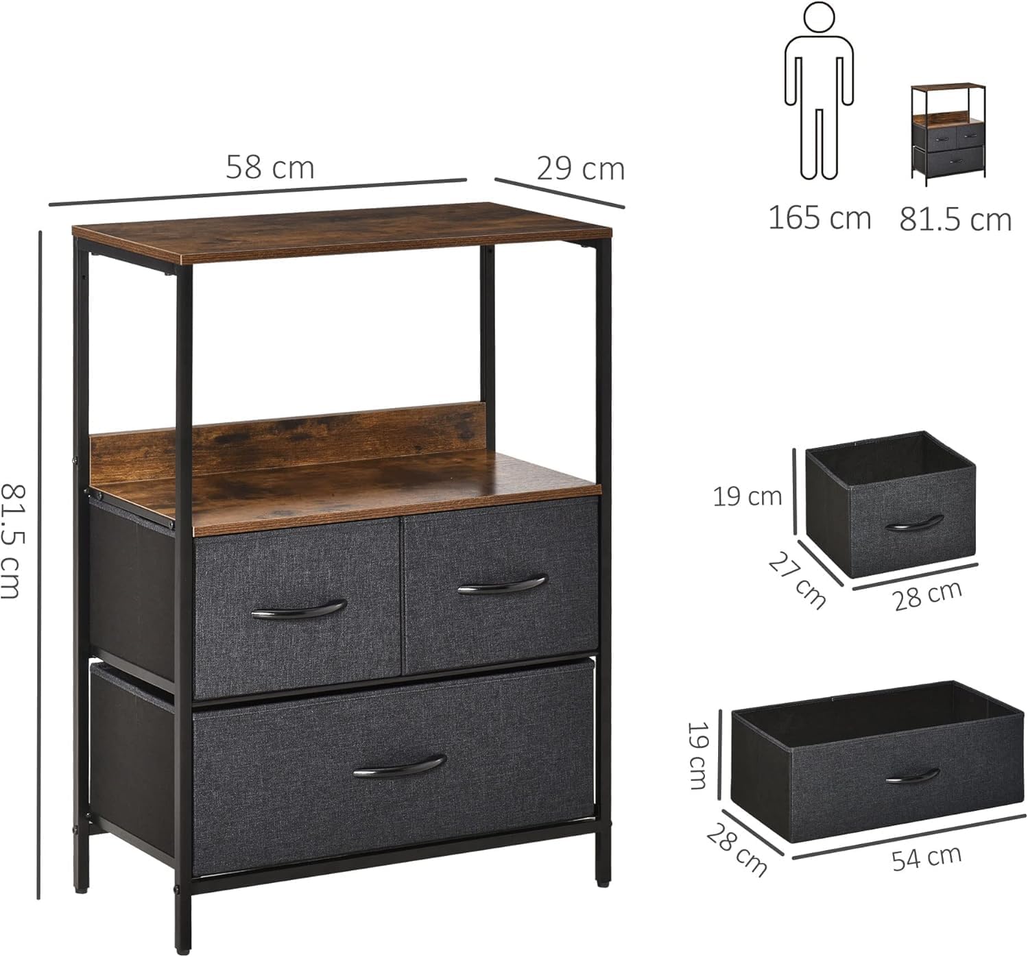 SKY-TOUCH 3 Fabric Drawer Nightstand Storage Chest Unit Home Cabinet w/Shelves Home Living Room Bedroom Entryway Living Furniture, Vintage,58 * 29 * 81.5cm
