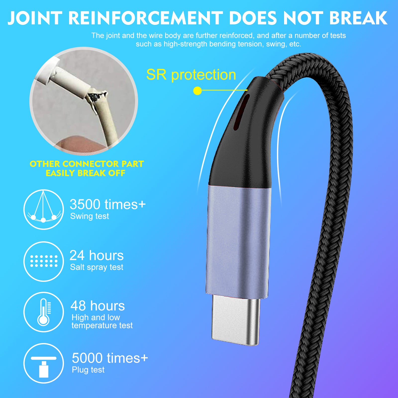 - تصميم موصل جذاب من سبائك الزنك، قلب نحاسي سميك، نايلون مضفر مع حماية متعددة الطبقات، يمكنه مقاومة اللف والخدش، ويمر عبر أكثر من 30000 انحناء، مما يجعل الشحن ونقل البيانات أكثر أمانًا واستقرارًا وأسرع وتقليل الحرارة والحصول على عمل طويل. حياة