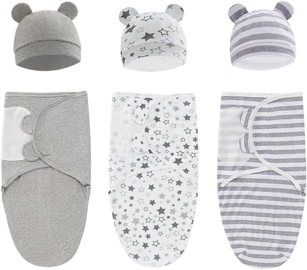 - IDEAL GIFT -Each package includes 3 wraps with hat. The swaddle is a newborn essential that helps with the transition from womb to cot by recreating that familiar, it is a nice first gift for newborn.