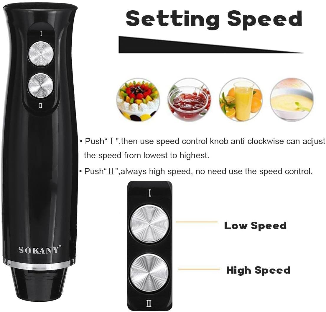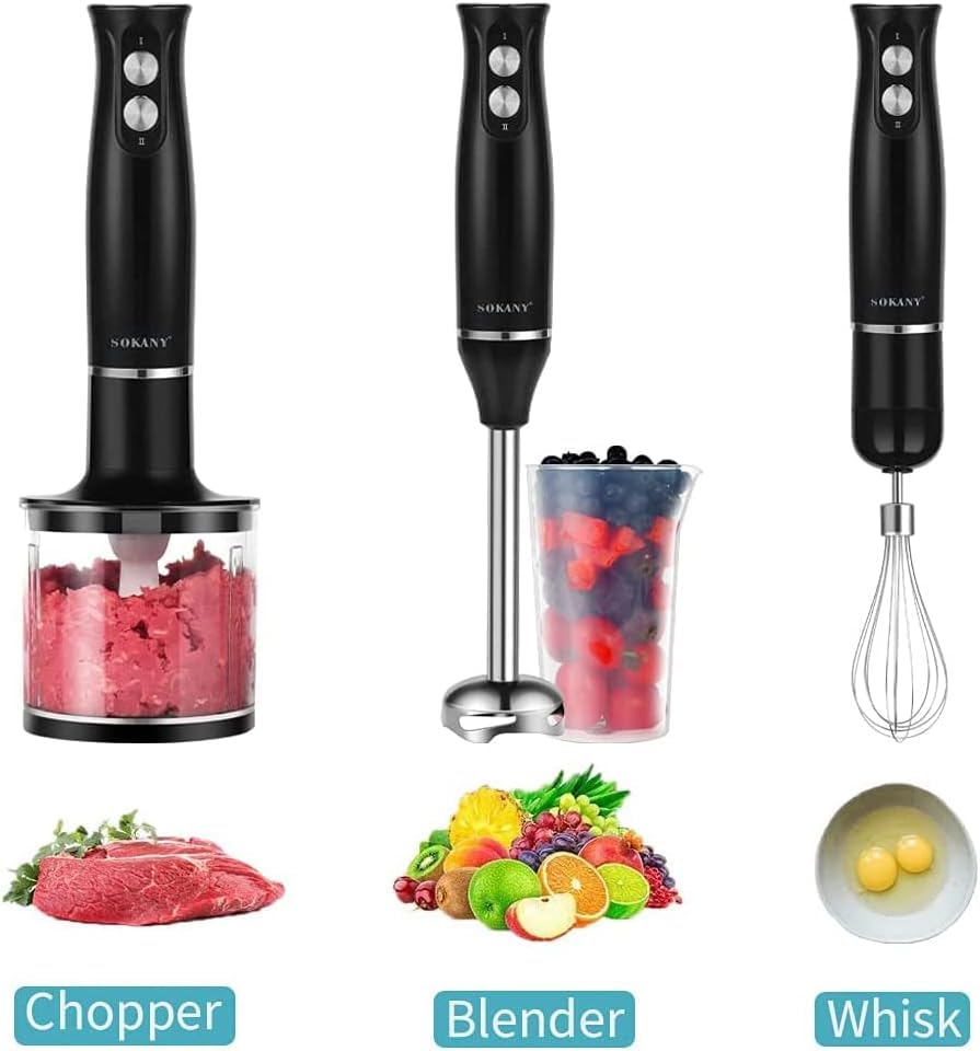 SKY-TOUCH 4 In 1 Immersion Hand Blender,500W Electric Blender Handheld,Stainless Steel Blades,Dual Speed,700ml Beaker,500ml Chopping Bowl,for Kitchen,Smoothie and Baby Food with Chopper, Whisk