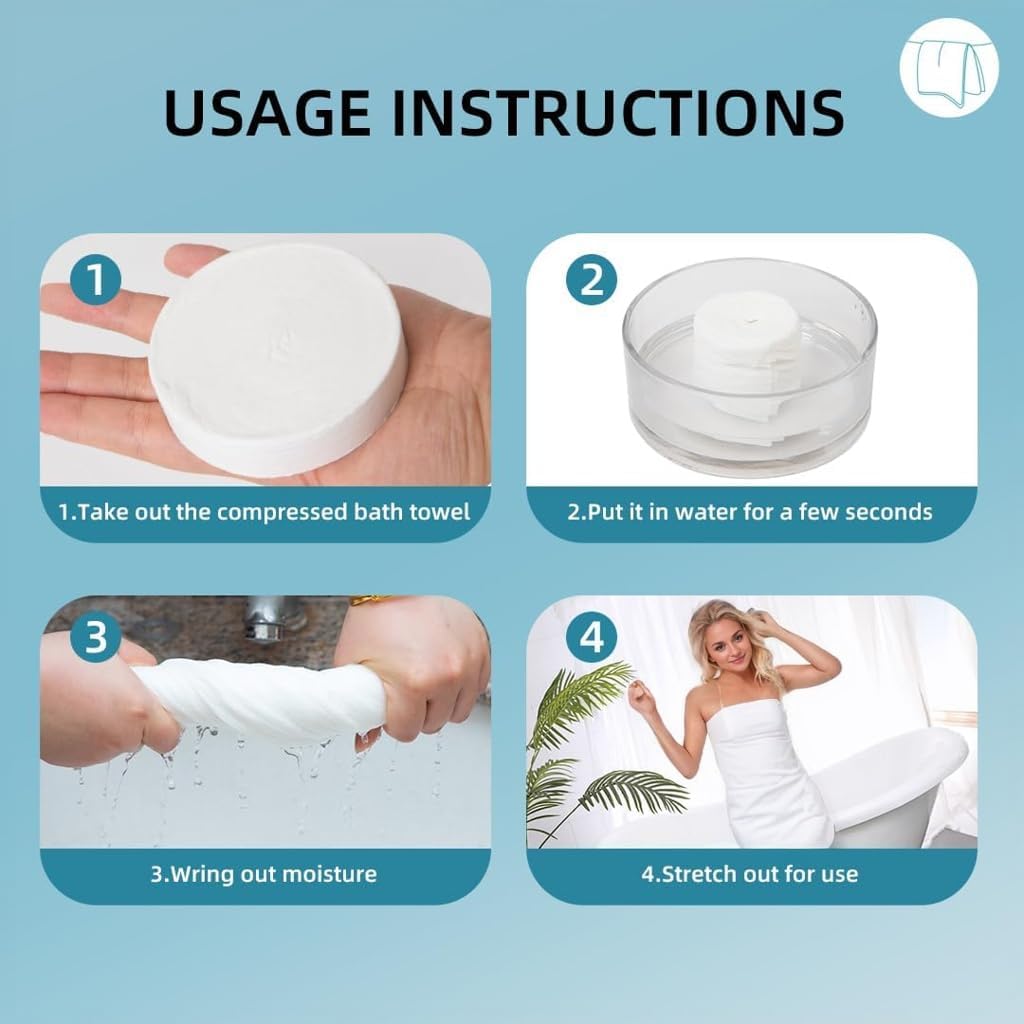 Compact & Travel-Friendly Design: Each towel is individually compressed into a compact size, perfect for storage in your bag, suitcase, or even pocket. When expanded with water, it unfolds into a full-size bath towel (70x140cm)