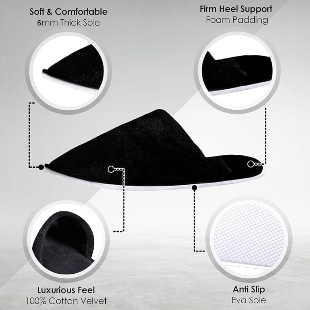 SKY-TOUCH 6 Pairs Of Disposable Black Slippers, Individually Packaged, Cotton Non-Slip, Suitable For Hotels, Spas, Graduation Ceremonies, Wedding Parties, Home Travel, Suitable For Adults