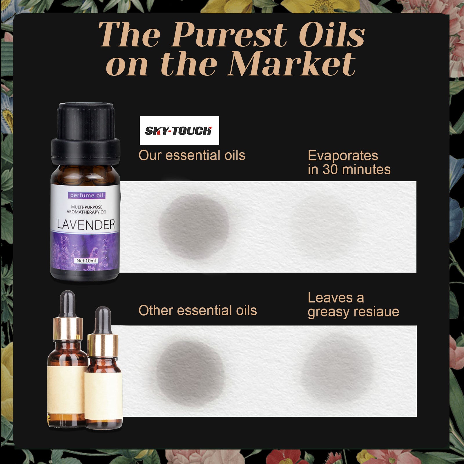 6 قطع × 10 مل من الزيوت العطرية من SKY-TOUCH تناسب الزيوت العطرية العطرية القابلة للذوبان في الماء (خشب الصندل والبرتقال الحلو والخزامى والأوكالبتوس والليمون والنعناع) زيت ناشر للعلاج العطري للمرطب، ناشر الروائح العطرية
