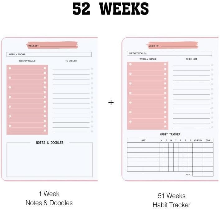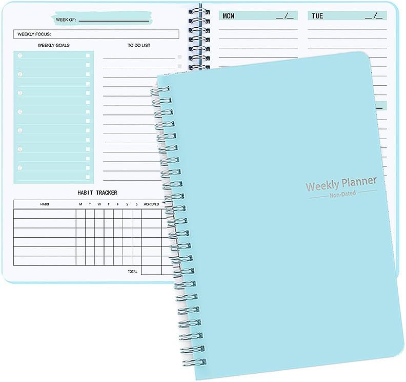 مخطط أسبوعي مقاس A5 من SKY-TOUCH: دفتر ملاحظات لقائمة المهام مع 52 ورقة غير مؤرخة، مخطط يومي مع منظم لتتبع عادة الهدف للمكتب والمنزل والمدرسة والعمل والدراسة والحياة