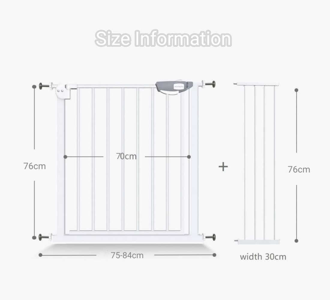 - 【قم بقياس الفتحة قبل الشراء】 هذه البوابة تناسب الفتحات من 75 إلى 114 سم فقط. لن يناسب أي فتحة أصغر من 74 سم. إذا كانت الفتحة أكبر من 114 سم، فسوف تحتاج إلى شراء ملحق إضافي.