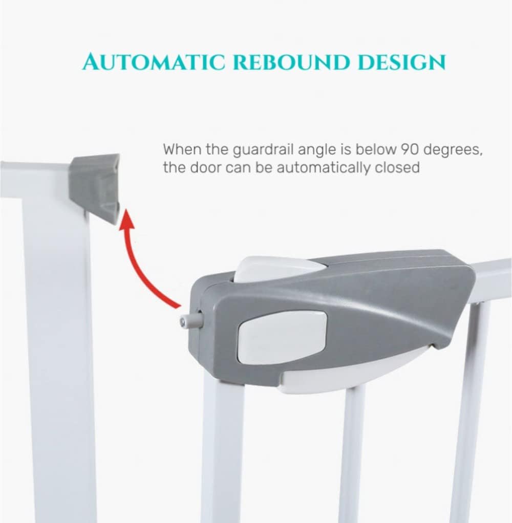 - 【كبيرة وواسعة】 ارتفاع 76 سم وعرض 75-114 سم، هذه البوابة البيضاء مناسبة لمعظم الأبواب! بوابة المرور الكبيرة الخاصة بنا تجعل من السهل المشي عند حمل الطفل. سهل الاستخدام، تركيب لمدة 5 دقائق باستخدام الأدوات المتوفرة. بوابة الدخول الواسعة للغاية مصنوعة من الفولاذ القوي، دون الحاجة إلى الحفر.