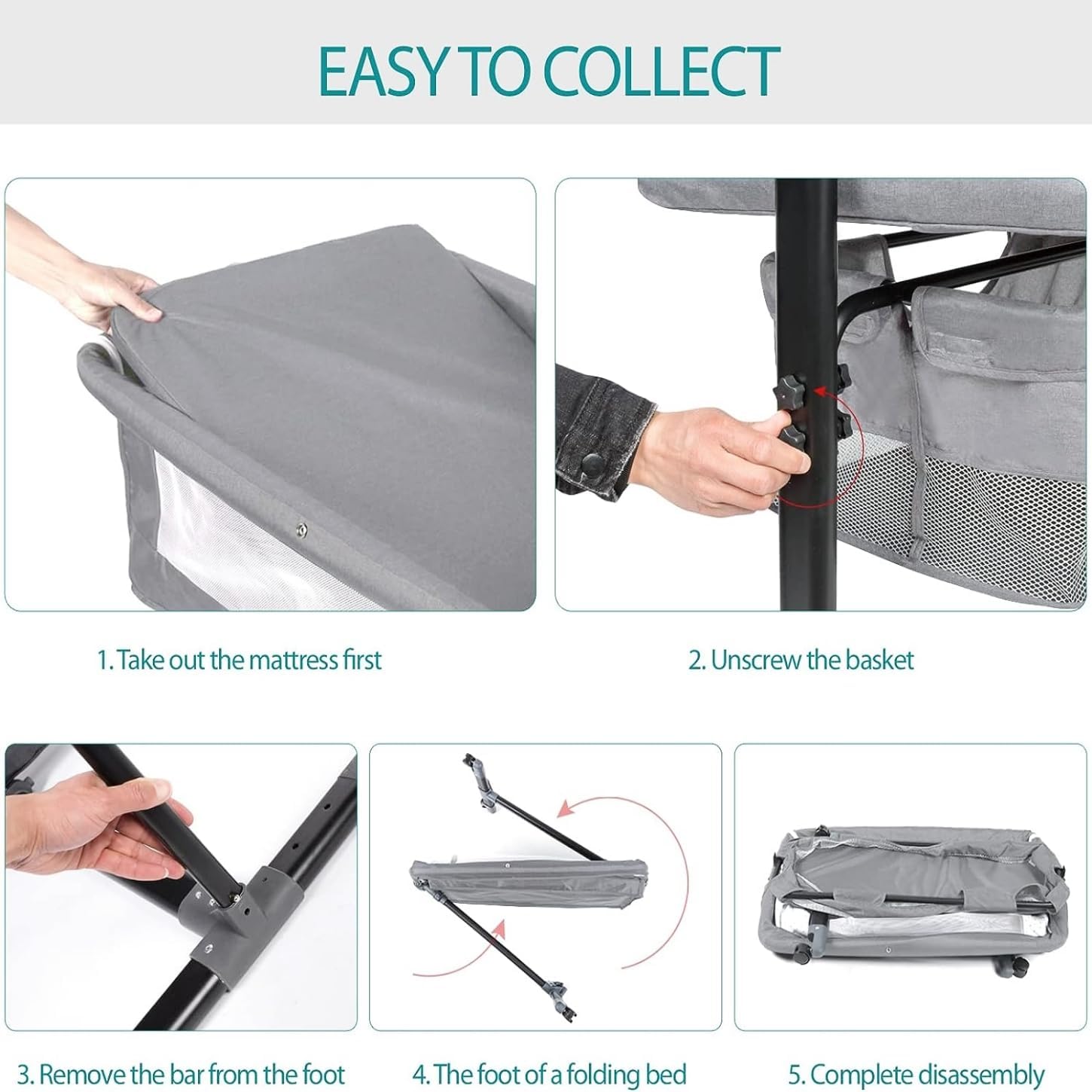- سرير أطفال متعدد الوظائف - يتميز بتصميم عصري ومتعدد الاستخدامات، هذا السرير متعدد الوظائف بجانب سرير الأطفال لديه عدة أوضاع للاستخدام: سرير أطفال بجانب سرير الأطفال، سرير مستقل وقفص لعب للأطفال. سهل الإعداد والإزالة في غضون ثوانٍ، لا يتطلب أدوات، سهل التجميع.