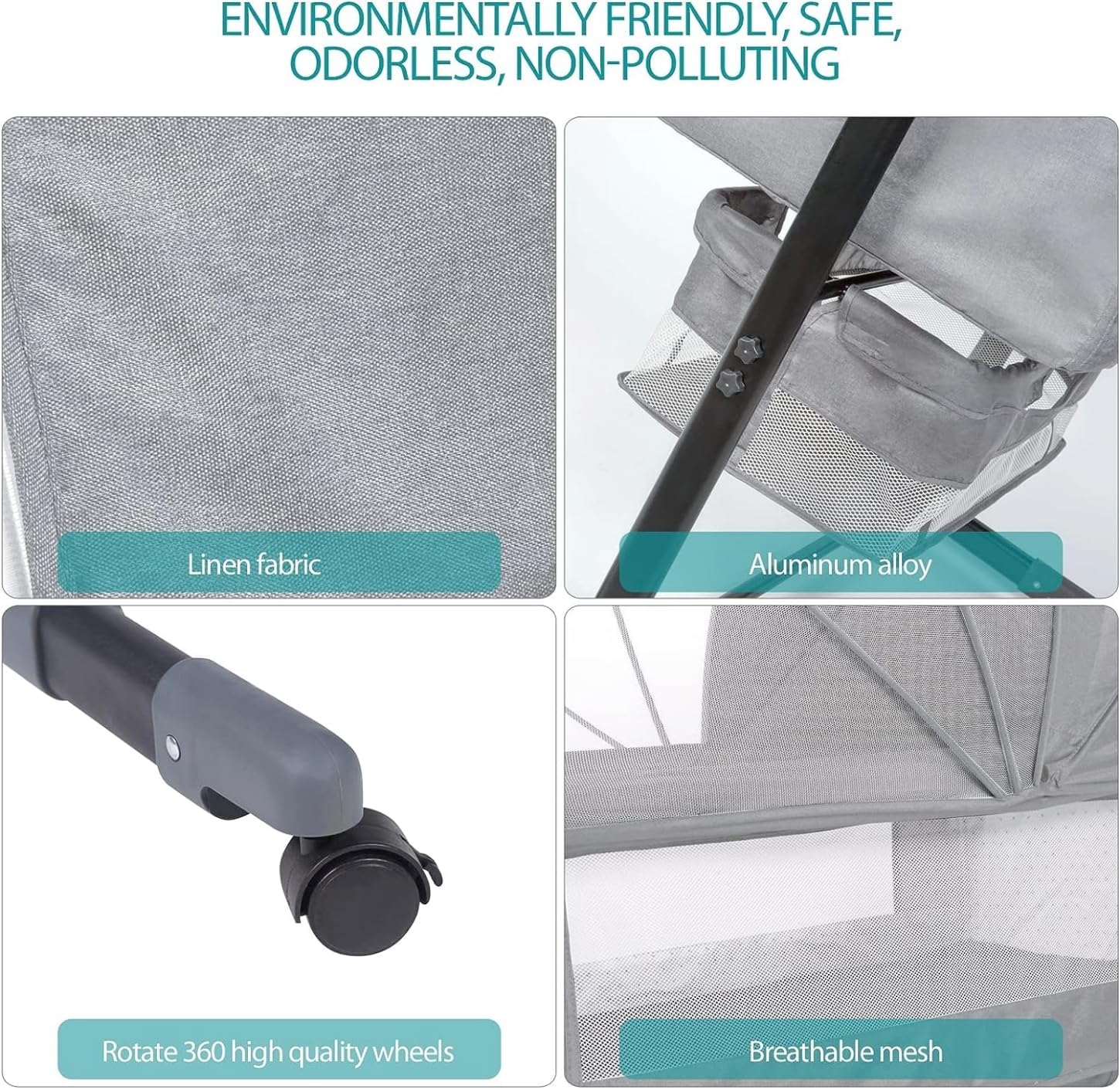 سرير أطفال من سكاي تاتش قابل للتعديل، مهد أطفال مع سلة تخزين كبيرة، سرير سفر مع شبكة قابلة للتنفس، شبكة ناموسية قابلة للفصل، مرتبة ناعمة بعجلات دوارة 360 درجة، للرضع حديثي الولادة