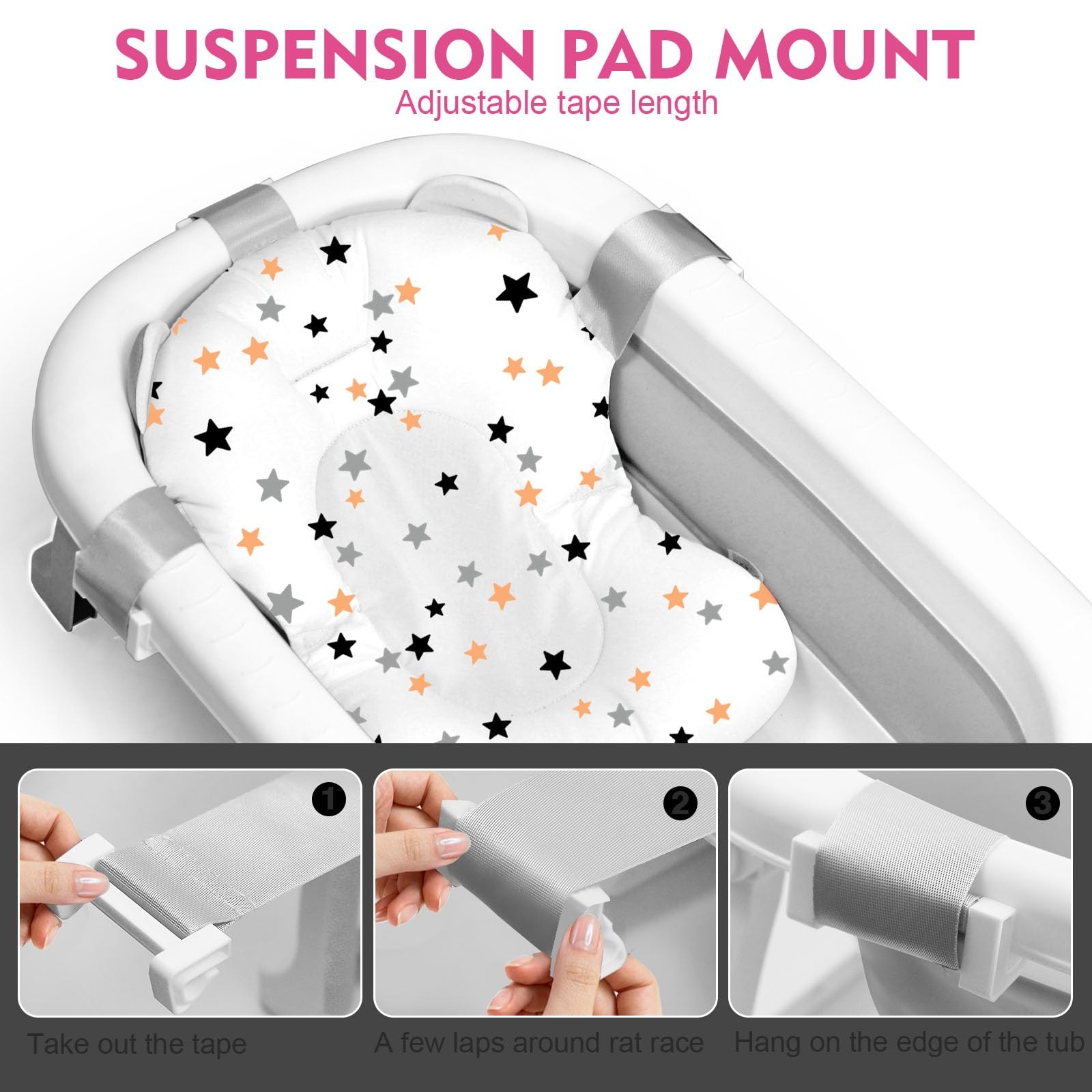 【Soft Baby Bath Cushion】This collapsible baby bathtub comes with a soft bath cushion that wraps the toddler's body nicely and is as comfortable as lying on the sofa. Parents can spare their hands during the baby bath shower - this is convenient for wiping or massaging the toddler's body. As the baby's body grows, the baby bath support cushion can be removed independently when not in use.