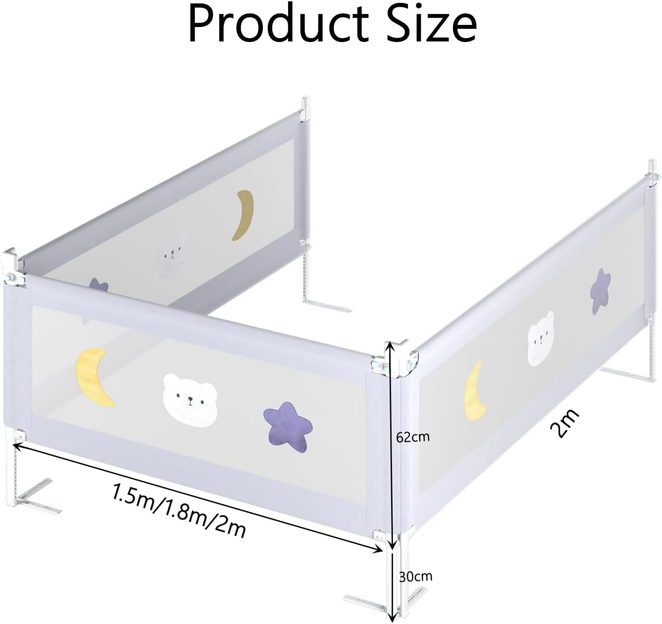 - 【Double Child Protection Lock】The toddler bed rail with double child safety lock design to prevent your kid from accidentally pressing lift button. Please measure the size of your bed and mattress for the right size bed rails before purchasing.(Note: This option is only one side rail. It is recommended to buy three sides for better stability)