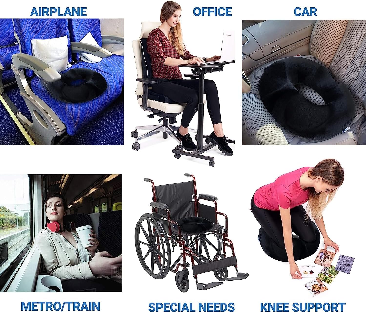 - متعددة الاستخدامات ومحمولة: مناسبة لمختلف الحالات مثل فتق القرص القطني، وآلام العصعص، والتعافي بعد الولادة، وما إلى ذلك، تلبي احتياجاتك المتنوعة. تم تصميم وسادة الدونات لتكون خفيفة الوزن وسهلة الحمل، مما يسمح لك باستخدامها في المكتب أو في المنزل.