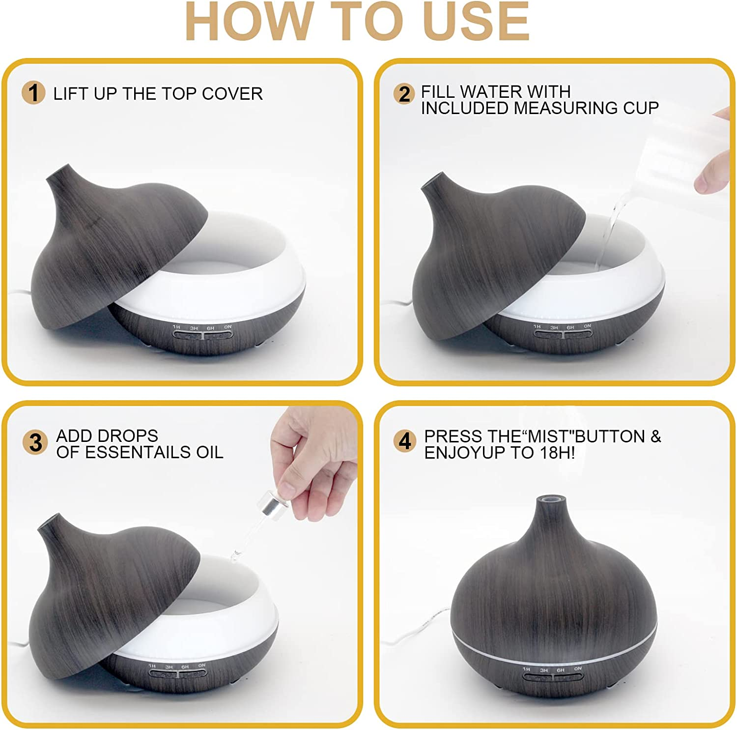 موزع روائح الزيوت العطرية من SKY-TOUCH، 550 مل مع 4 مؤقتات، ناشر للعلاج العطري مع وظيفة الإغلاق التلقائي، مرطب رذاذ بارد خالٍ من مادة BPA لغرفة النوم المنزلية