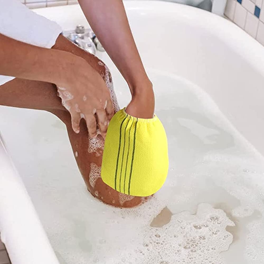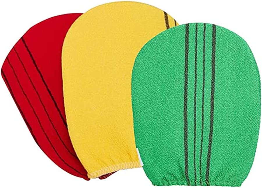 قفازات تقشير سكاي تاتش 3 قطع، منشفة حمام كورية للتقشير لإزالة خلايا الجلد الجافة والميتة، قابلة لإعادة الاستخدام (لون عشوائي)