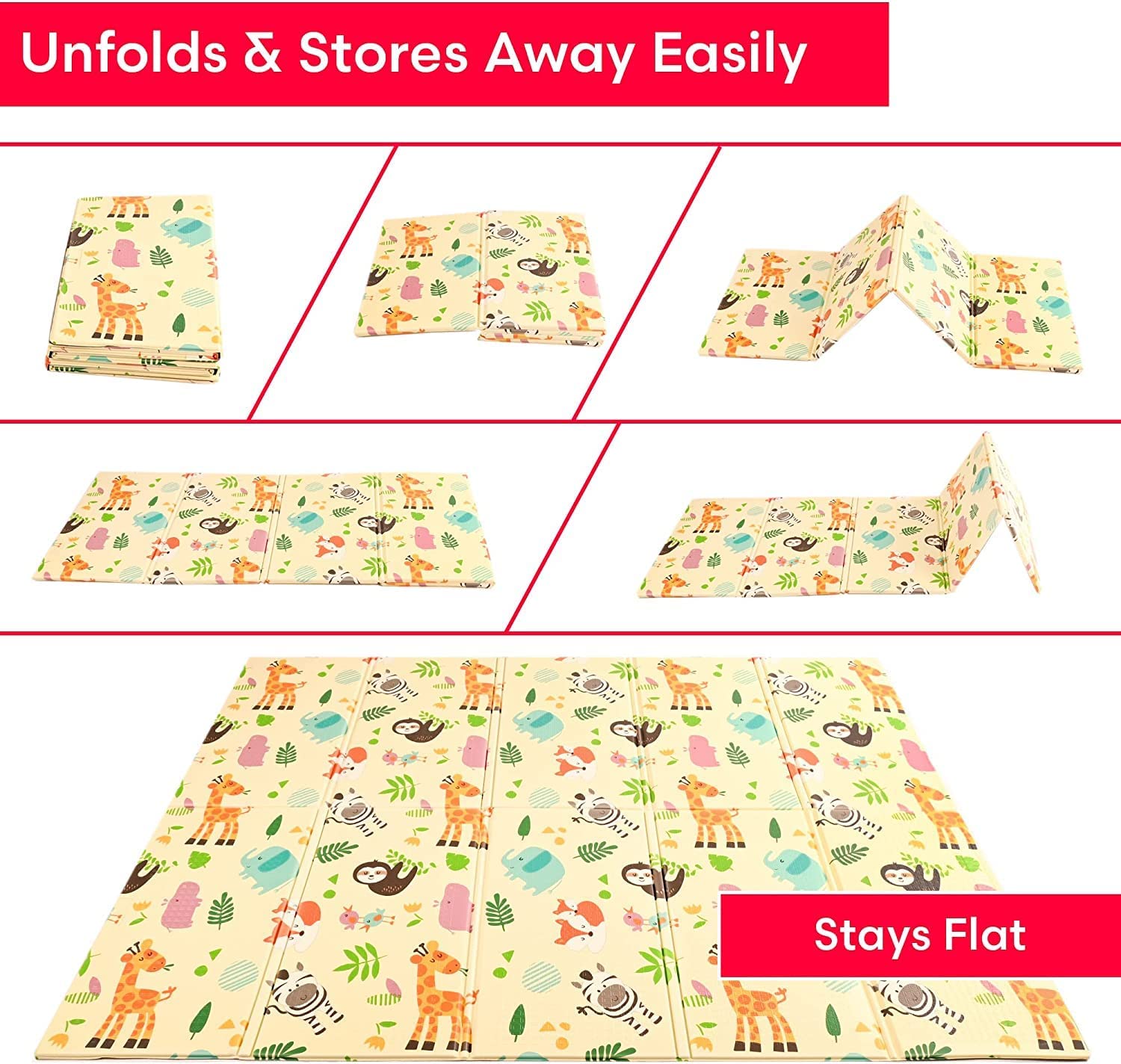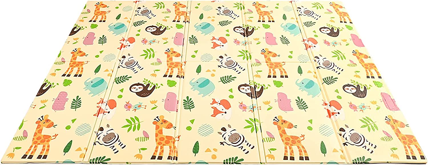 سجادة لعب الأطفال القابلة للطي من SKY-TOUCH، مقاومة للماء وغير سامة، سجادة لعب زحف إسفنجية ناعمة وسميكة للغاية، سجادة كبيرة مزدوجة الجوانب وقابلة للعكس للرضع والأطفال الصغار 180 سم × 200 سم × 1.5 سم