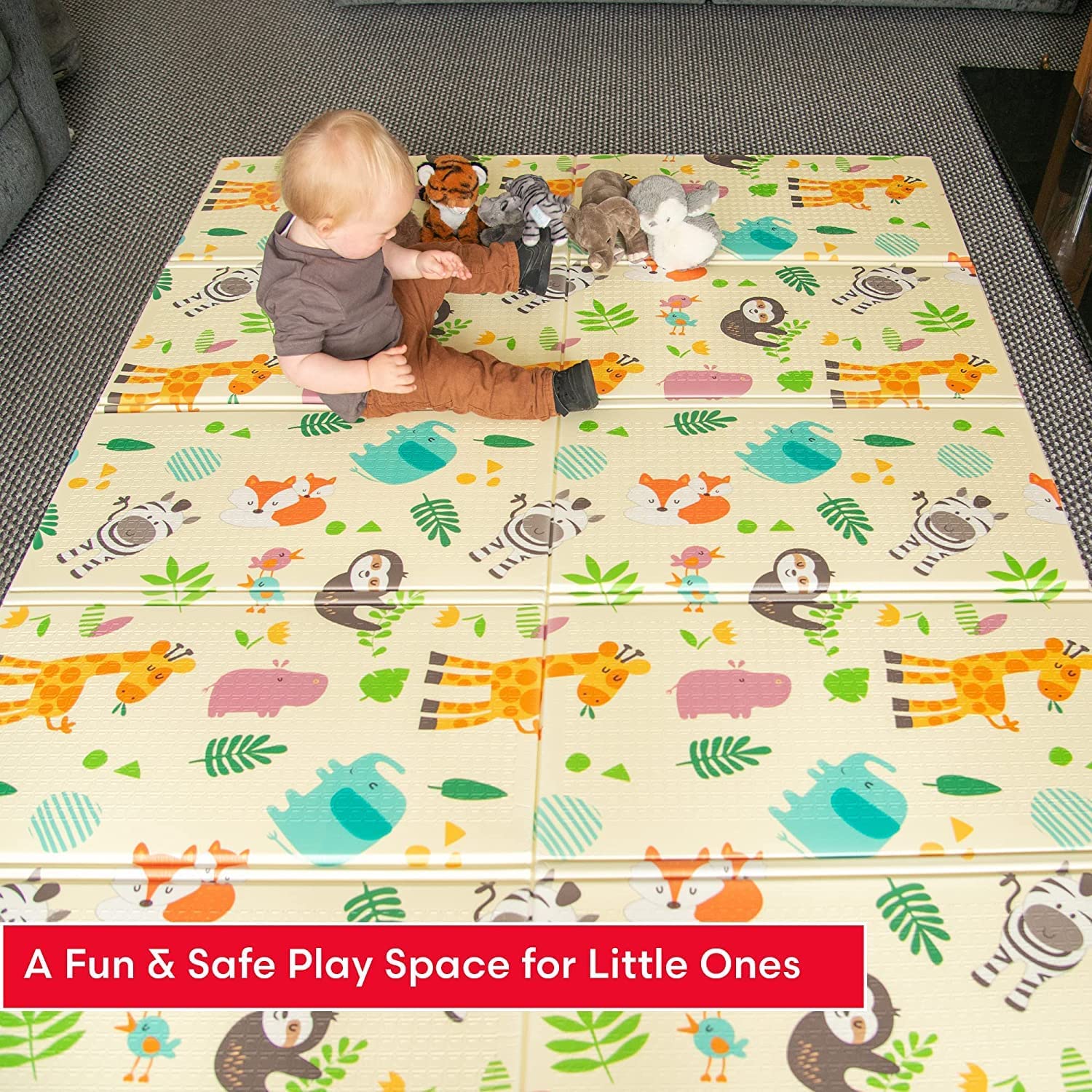 - مصنوعة من مادة إسفنجية ناعمة، تصميم مزدوج الجوانب من أجل اهتمام أطفالك، وهي مادة غير سامة توفر السلامة والصحة الجيدة للأطفال.
