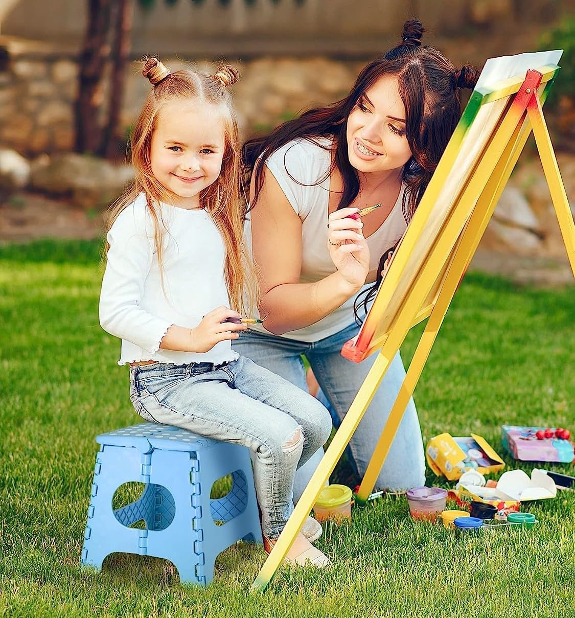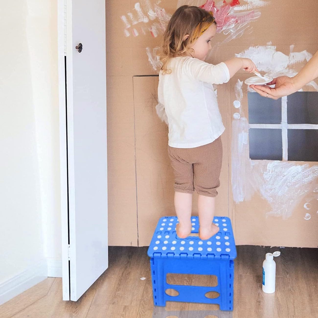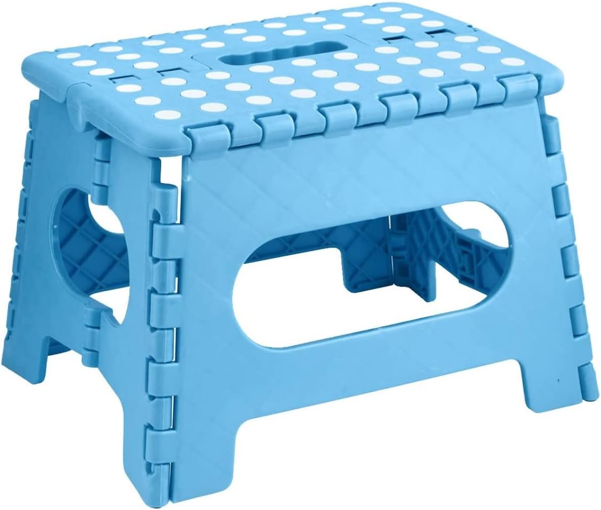 مقعد خطوة قابل للطي من SKY-TOUCH للأطفال، ومقاعد قدم قابلة للطي بارتفاع 9 بوصات، ومقعد بلاستيكي قابل للطي للمطبخ، والحمام، والحديقة، والداخل، والبراز خفيف الوزن في الهواء الطلق - يحمل ما يصل إلى 300 رطل (أزرق)