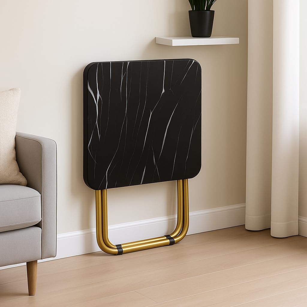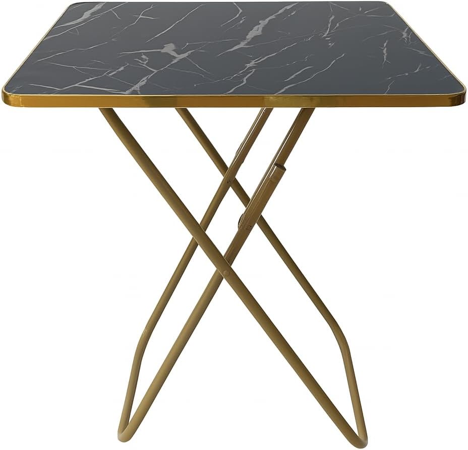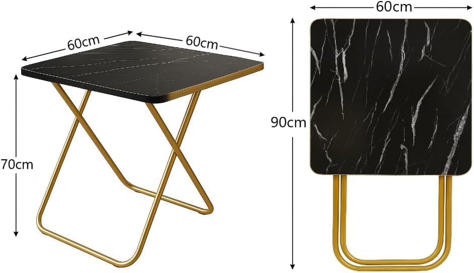 SKY-TOUCH Folding Table, Multi-Purpose Iftar Table with Black Marble-Look Wood Top Gold Metal Frame, for Prayer, Dining, Sofa Side, Outdoor & Bedroom, No Assembly, Portable & Space-Saving(60*60*90cm)