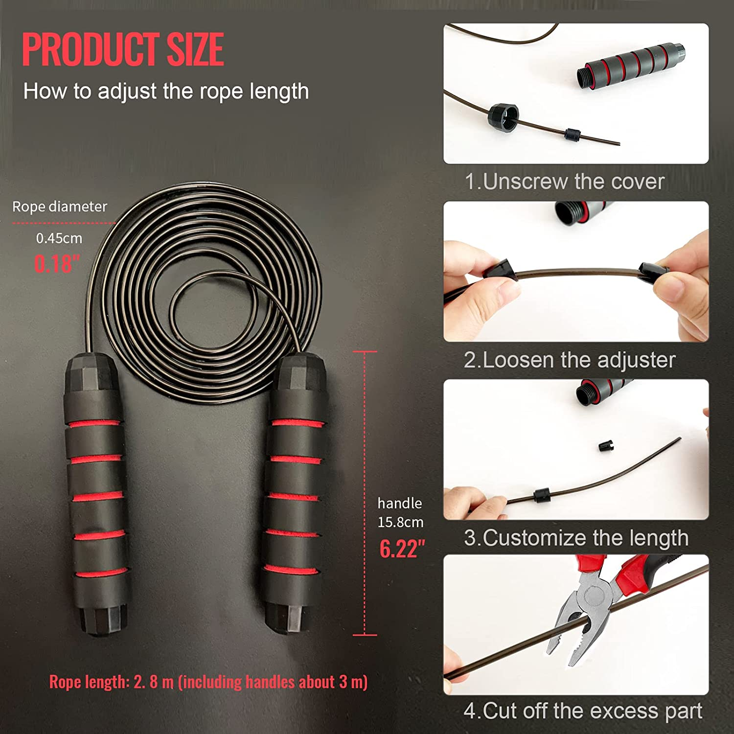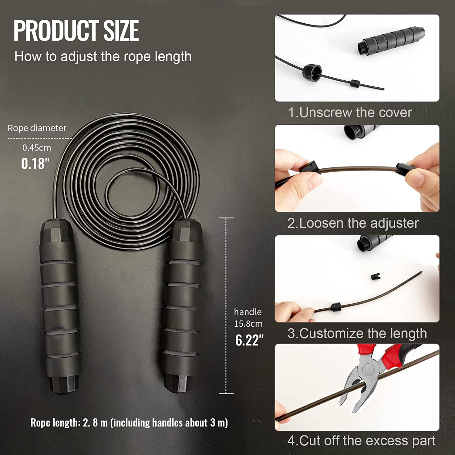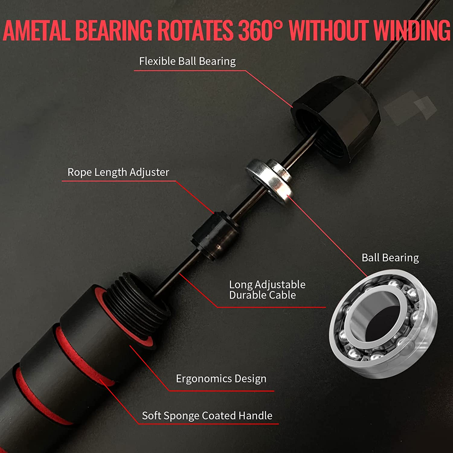- قابل للتعديل بالكامل - بسرعة: اضبطه على الطول المطلوب وفقًا لطولك. مناسب لجميع الأعمار (الكبار، الرجال، النساء، الأطفال، الأطفال، الأولاد والبنات) وجميع مستويات الخبرة. خفيف ومحمول: يجعل من السهل تحقيق أقصى قدر من حرق الدهون وتوحيد العضلات وتحقيق أقصى قدر من اللياقة البدنية في أي مكان. تمرين مريح: الملمس الحصري للإسفنج الخفيف والمقابض الإسفنجية المريحة يقلل من التوتر في يديك. " جودة عالية: مع محمل كروي عالي الجودة، ضمانات