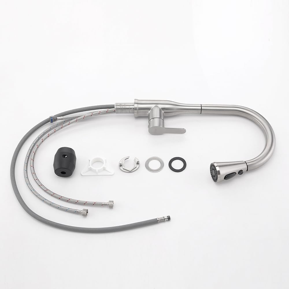 Premium Stainless Steel Build:Crafted from lead-free SUS 304 stainless steel, this faucet ensures durability, corrosion resistance, and a sleek finish. The ceramic valve core prevents leaks, while the integrated aerator saves 20% water (1.8 GPM flow rate at 60 PSI). Plus, the high-temp PEX hose resists bursts for long-term reliability.