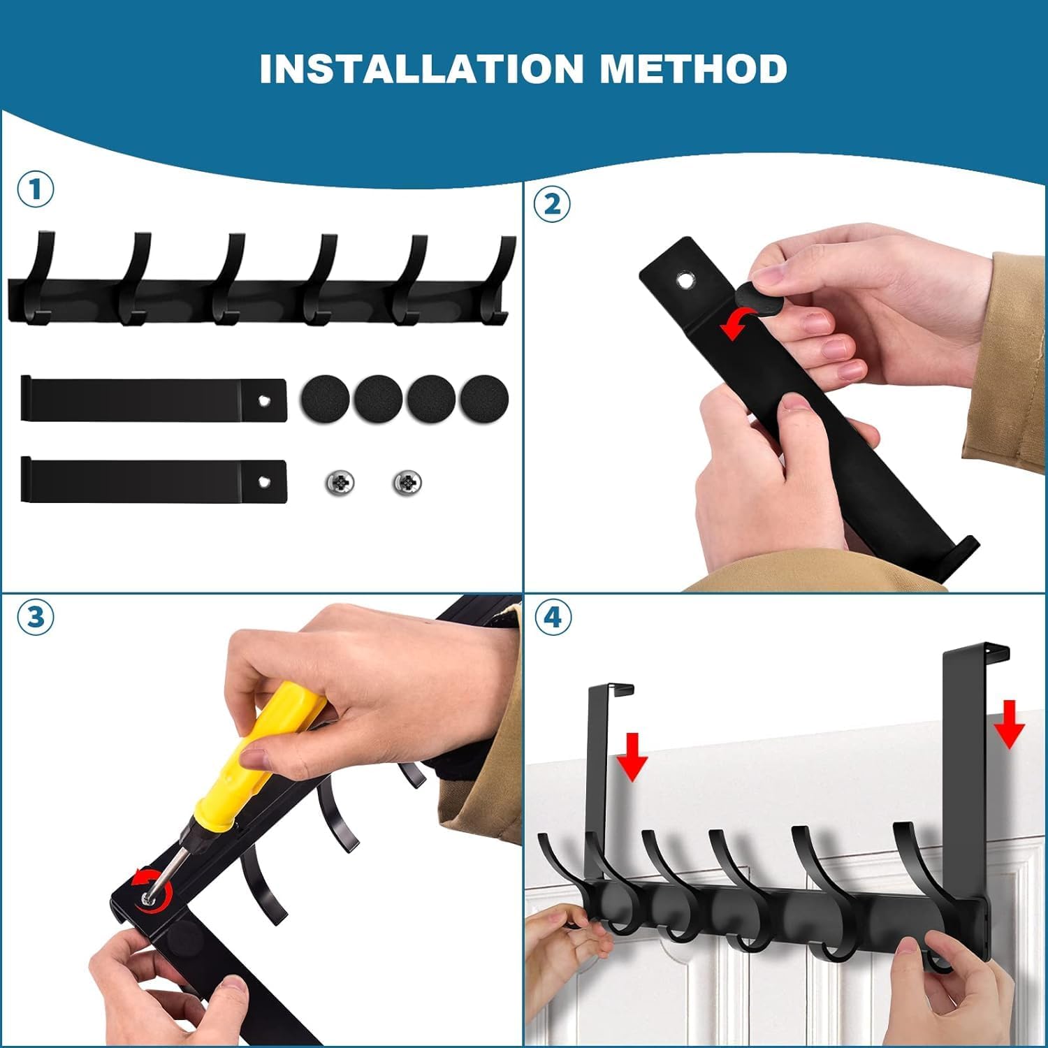 【Suitable for Most Doors:】The size of the door hanger is 40x18 cm,fits most standard doors, has a maximum thickness of 4.5cm,6-hooks over door hooks.Use them in the bathroom, bedroom, closet, or anywhere you need extra hanging space.