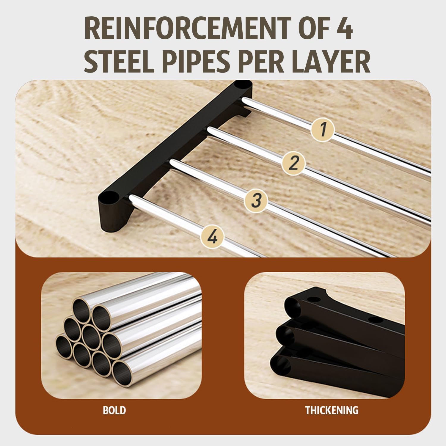 - Durable & High-Quality Materials:Constructed with strong steel pipes and sturdy PP plastic connectors. The smooth, wear-resistant steel ensures long-lasting use, while the stable plastic joints keep the structure secure.