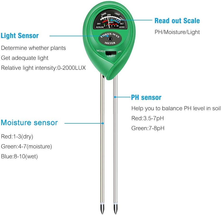 مقياس درجة الحموضة للتربة SKY-TOUCH 3 في 1 لرطوبة التربة/الضوء/أداة اختبار البستنة للحديقة والمزرعة والحديقة الداخلية والخارجية (لا حاجة إلى بطارية)