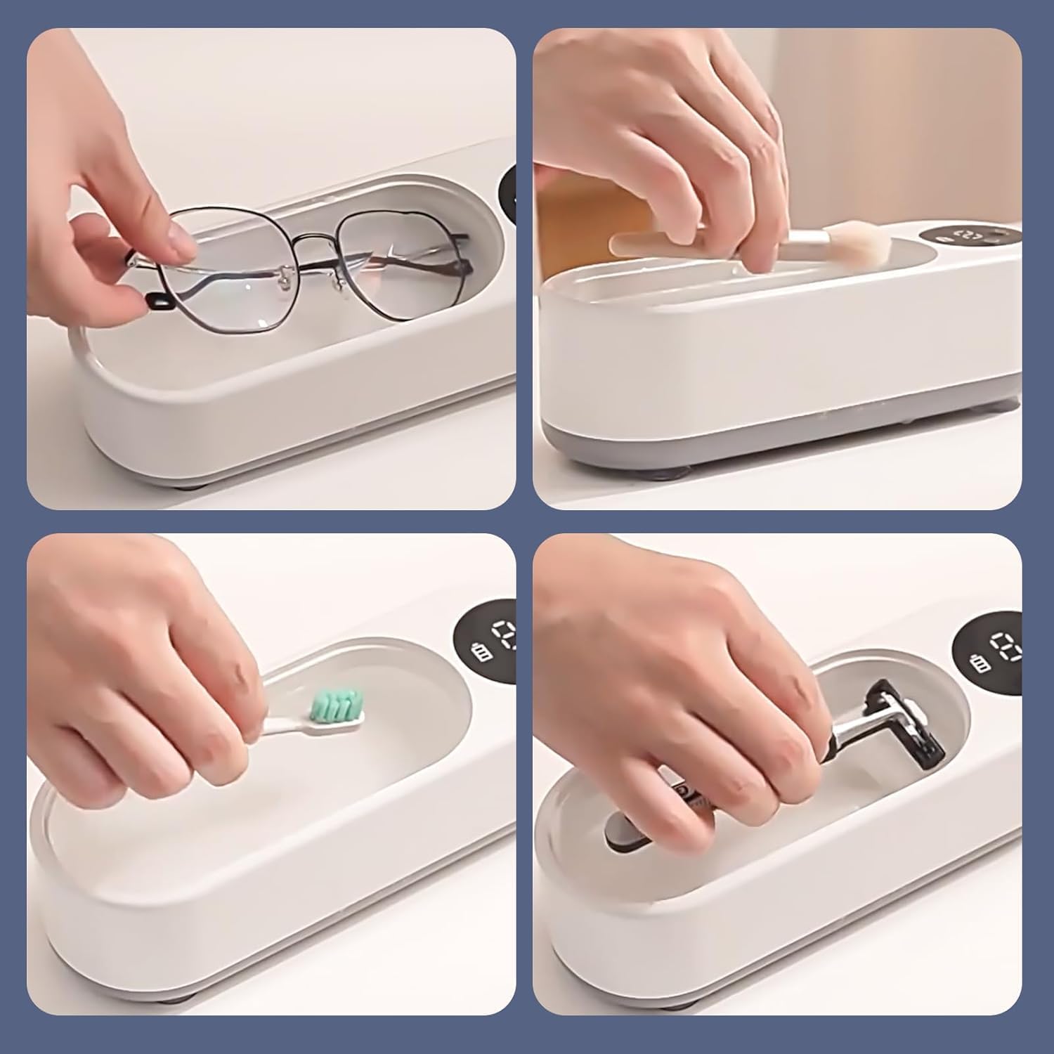 - 【Working efficiently】The cleaner generates 45,000 Hz of sound waves. Millions of small and delicate cleaning foam are generated during the cleaning process, which can attack stubborn stains to achieve powerf and softness. It won't damage your valuables while refreshing them as new.