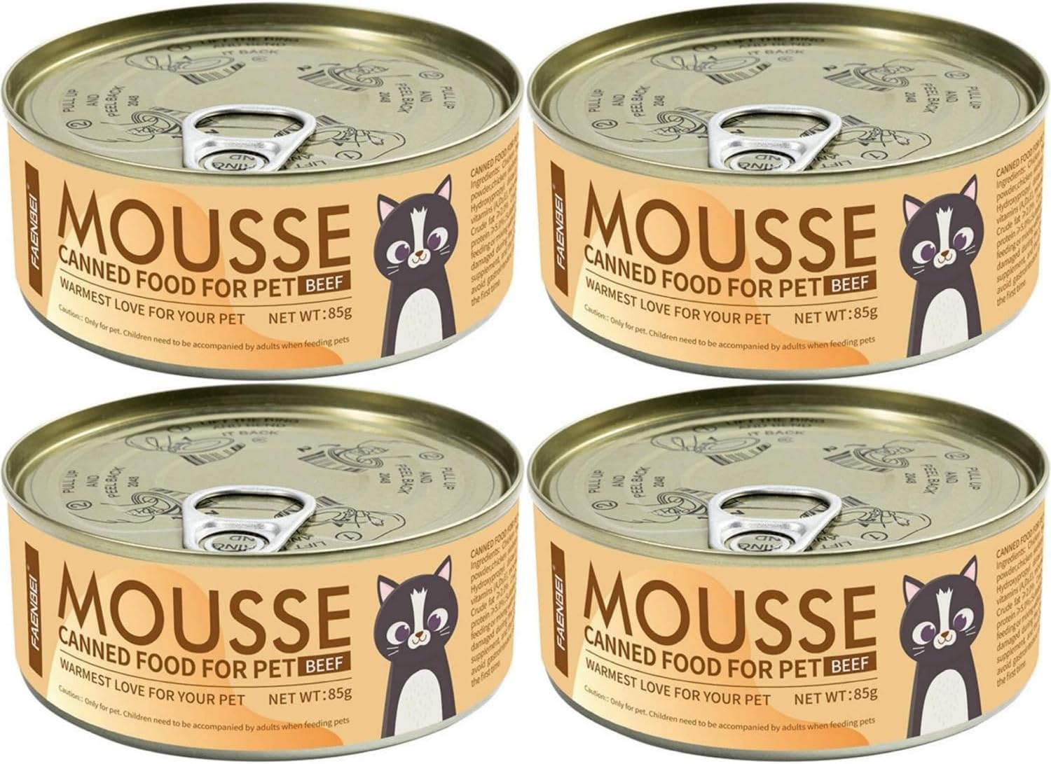 SKY-TOUCH Wet Cat Food Can, Premium Cat Food Mousse 85g, Grain-Free Soft Pâté with Taurine, Vitamins & Minerals – High Protein Balanced Nutrition for Kittens & Adult Cats(Beef, Pack of 4)