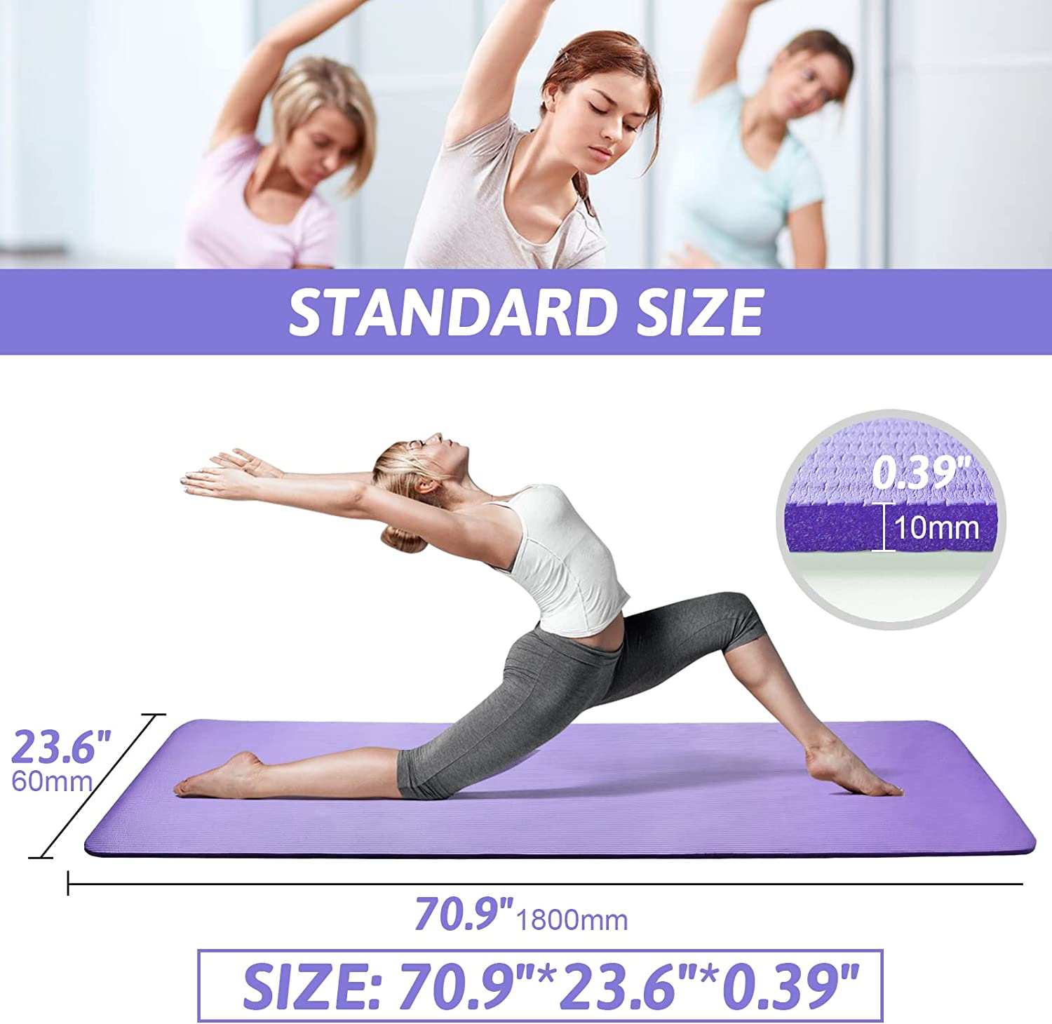 سجادة يوجا SKY-TOUCH غير قابلة للانزلاق، سجادة يوجا مع حزام متضمنة بساط تمرين بسمك 10 مم مثالية لتمارين HiiT والبيلاتيس واليوجا والعديد من التدريبات المنزلية الأخرى