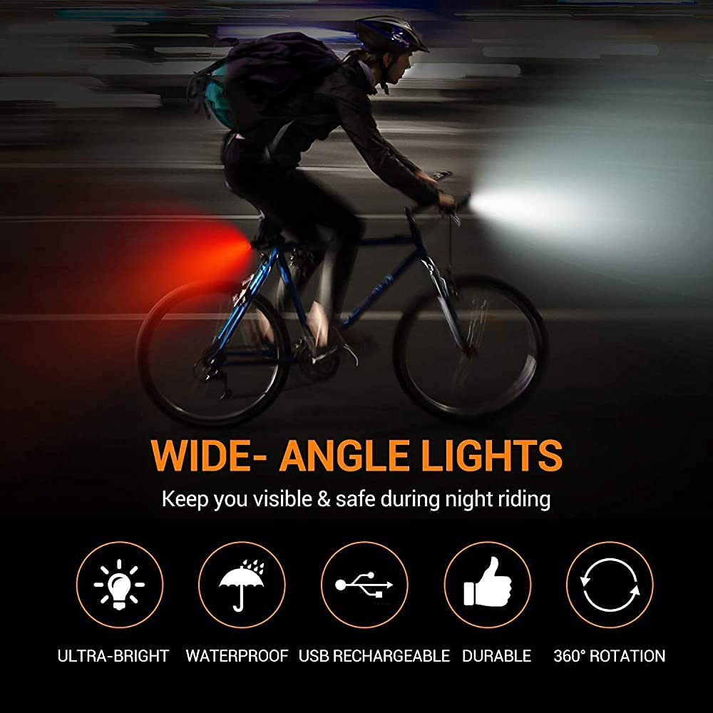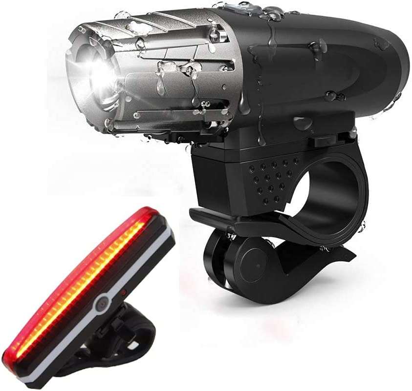 مجموعة مصابيح الدراجة القابلة لإعادة الشحن USB من SKYTOUCH بقوة 320 لومن ملحقات الدراجة الأمامية والخلفية القوية للركوب الليلي، عاكسات المصابيح الأمامية لركوب الدراجات للأطفال، الطريق، الدراجة الجبلية، أسود