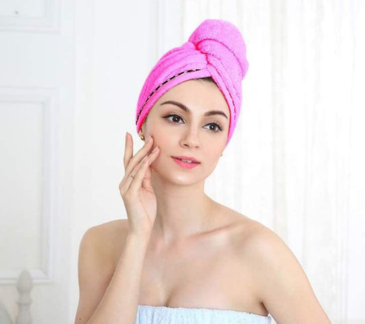 100pcs - 2 Pack Hair Drying Towels, Microfiber Hair Dry Cap Absorbent Fast Drying Hair Turbans With Elastic Loop and button, Hair Towel Wrap Quick Dry for Women Wet Hair (Pink, Rose Red)