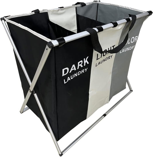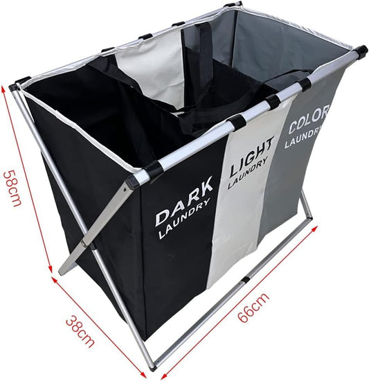 SKY-TOUCH Large Laundry Basket Bags Foldable,3-Section Laundry Hamper Portable Dirty Clothes Bag Sorter with Handle,Large Capacity Fabric Washing Storage Baskets for Bathroom Bedroom Home 135L