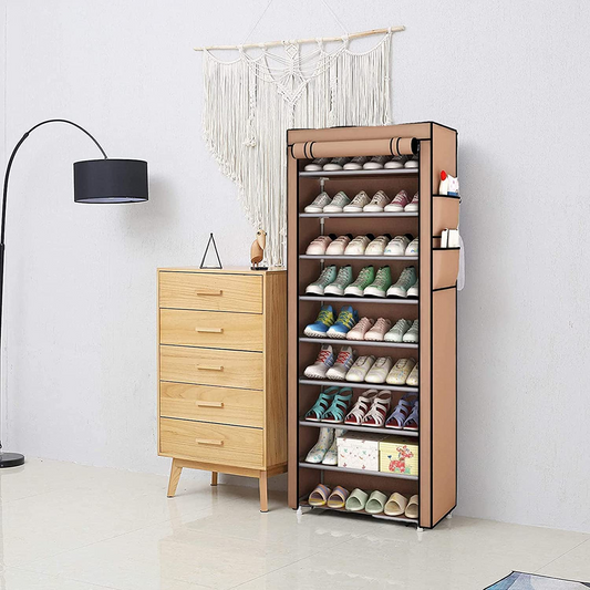 SKY-TOUCH 10 Tiers(9 shelfs) Simple Shoe Cabinet 160x60x30cm Shoe Dust Cover Folding Creative Home Shoe Rack with Dustproof Closet Storage Organizer - Brown
