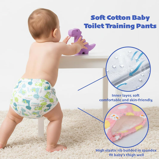 SKY-TOUCH 5PCS Baby Potty Training Pants Cotton, Soft Breathable Potty Training Underwear for 1-3 Years, Highly Absorbent Reusable Diapers for Baby Boys & Girls (M, Boy 8-13kg)