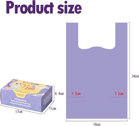 SKY-TOUCH Portable Biodegradable Disposable Diaper Wet Waste Bag (400pcs/box) Baby Powder Scented Wet Waste Bag Vest Design Baby Diaper Bag Suitable for Travel and Daily Use