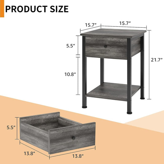 SKY-TOUCH Nightstand Table with Drawer, Bedside Table Wood Night Stand Modern End Table Side Table for Bedroom and Living Room, Sturdy Steel Frame, Easy Assembly, Grey